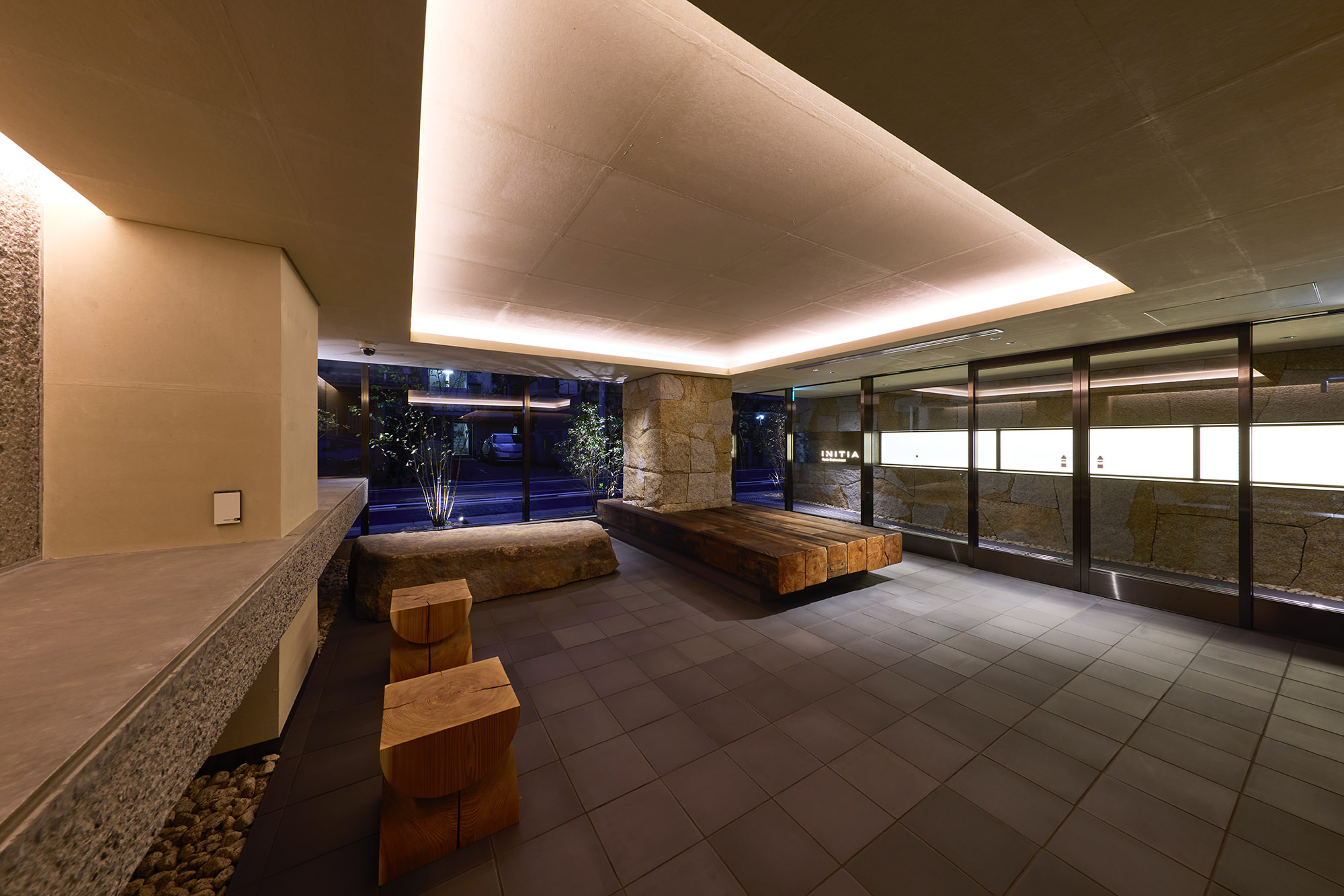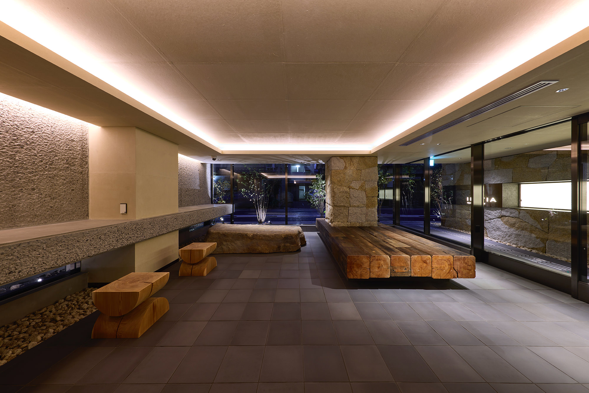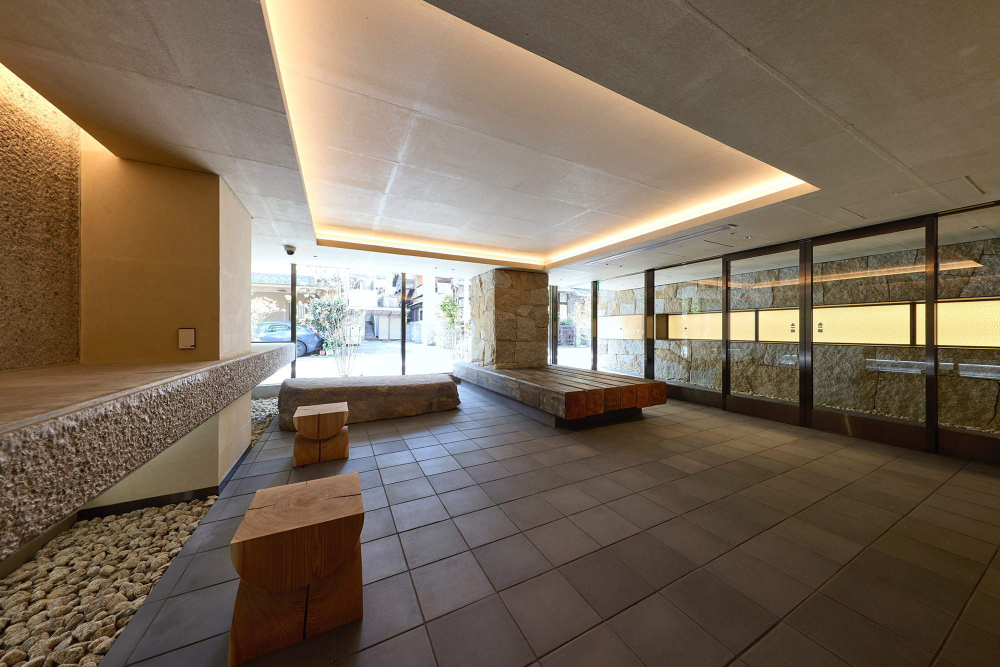 平面をリズミカルにデザインし、直線交差が連続する緊張感のなかにも、素材の持つ豊かな質感が活きた有機的エッセンスがにじみ出る。